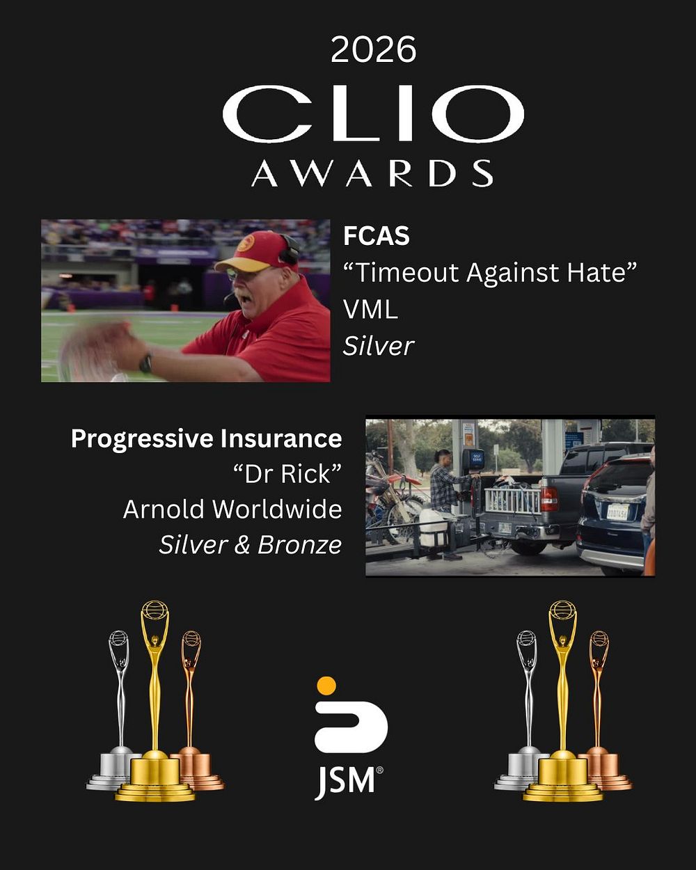 Two awesome JSM projects with two great agencies won 3 Clio Awards. Brings the total for JSM to 115 Clio Awards. Crazy.